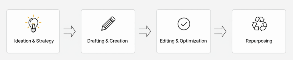 - AI Does: Keyword research, topic brainstorming, competitive analysis.